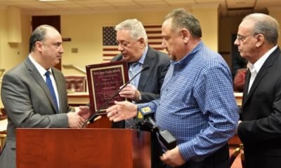 Mayor Nicholas Sacco presented a plaque to local chiropractor Dr. Gerard Busacco on Wednesday, Feb. 20, 2019 for helping to save the life...