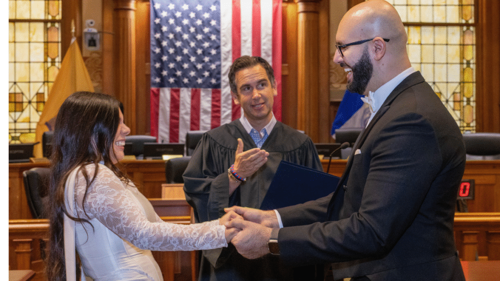 The couple held a civil ceremony on October 8, 2025, at Jersey City Hall, officiated by Mayor Steven Fulop. The event took place just one hour before Saleh’s scheduled City Council meeting.