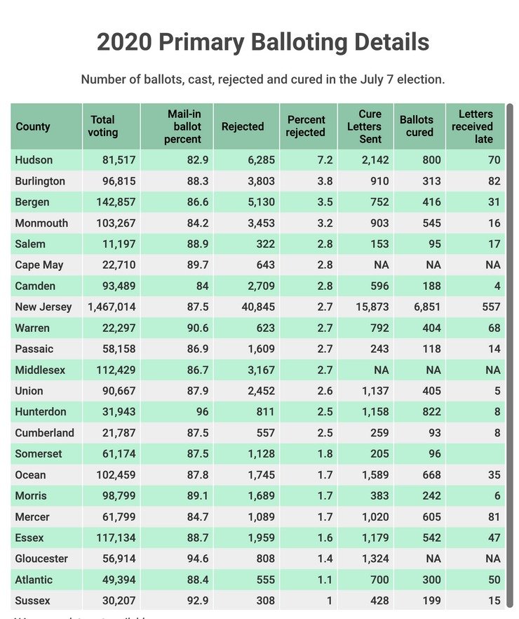 Hudson County had the lowest voter turnout of all NJ counties; 6,500 ballots rejected