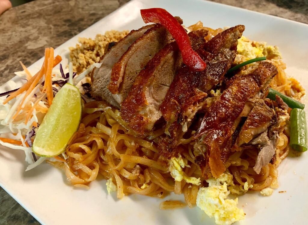 Lotus Thai Restaurant on 7007 Park Ave in Guttenberg: This cozy and elegant Thai restaurant is perfect for a date night or a quick dinner. The chandelier-hung interior creates a warm and inviting atmosphere. The menu offers a wide variety of options and prices that are relatively inexpensive, making it a great option for a budget-friendly dinner. The restaurant also offers a BYOB policy, allowing you to bring your own wine or beer to complement your meal. If you’re in a hurry, don’t worry, their delivery service is satisfyingly fast. Our favorite order is the signature Pad Thai with Crispy Duck. It’s a must-try for anyone visiting Lotus Thai.