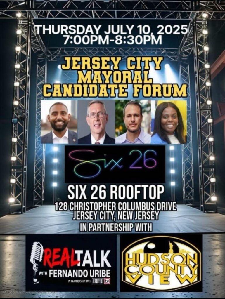A mayoral forum scheduled for July 10 at Six26 in Downtown Jersey City was canceled following backlash over co-host Fernando Uribe, a political commentator and podcaster. The event, organized by Uribe and Hudson County View editor John Heinis, was set to include candidates Bill O’Dea, James Solomon, Mussab Ali, and Christina Freeman.