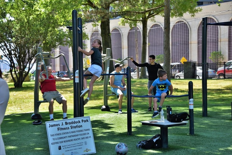 As the park has continued to improve and add features over the past few years, it seemed a perfect location for the Health Department to encourage residents to get out, exercise, and improve their health and fitness. The station was completed thanks to a $70,000 contribution from Hackensack University Health Palisades Medical Center and Rotary Club District 7490, and was installed by the Hudson County Parks Department.