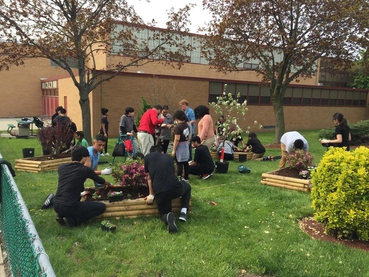 Another one of Hojnowski’s efforts, in partnership with the MUA, the North Bergen Green Team and the high school’s environmental club, and through a sponsorship with Home Depot, resulted in a school garden that will beautify the high school grounds and includes a tree planted in remembrance of former teachers.