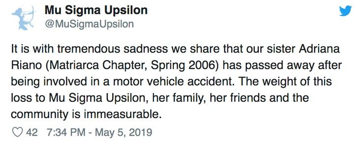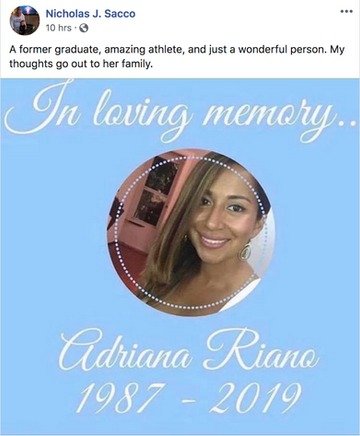 Riano worked as a nurse at Hackensack University Medical Center and was also a proud member of the Mu Sigma Upsilon Sorority.