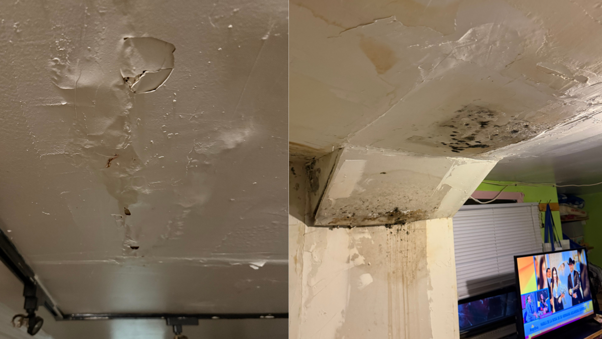 The images, obtained by HudPost, show extensive water damage, peeling ceiling plaster, and visible mold in tenant units. Others display cracked surfaces and mold streaks along interior walls.
