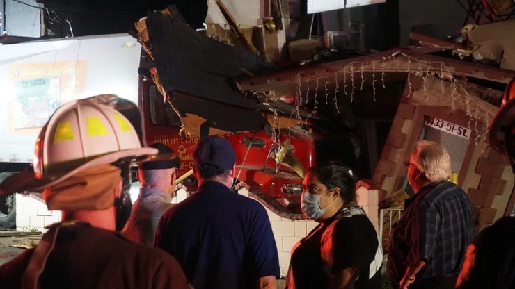 Currently the vehicle has been removed. The building is being assessed by the Building Department.