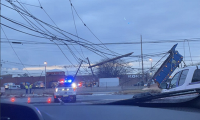 Route 3 in Secaucus, New Jersey, near the New Jersey Turnpike – Eastern Spur, is closed in both directions due to downed wires. A truck is...